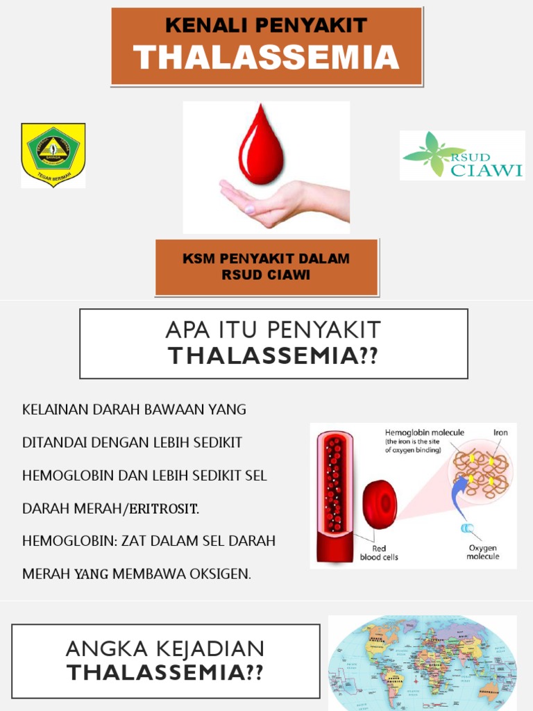 Thalassemia merupakan penyakit kelainan darah merah yang diturunkan dari kedua orangtua kepada anak dan keturunannya. Apa itu TalasemiaTalasemia adalah penyakit genetik sel darah merah. Sebagian besar penderita mengalami anemia yang ringan.